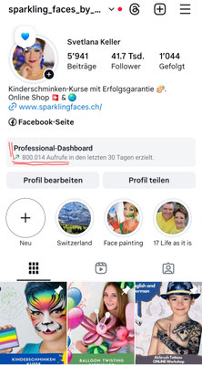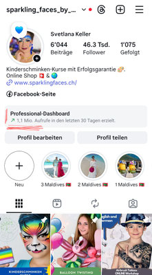 Meine Plattform www.sparklingfaces.ch steht seit Jahren für erstklassige Auffindbarkeit rund ums Kinderschminken. Dank exzellenter Platzierungen in Google und einer starken Social‑Media‑Präsenz (Instagram‑Reichweite bis zu 2 Mio. Views pro Reel) erhalte ich kontinuierlich Anfragen von Familien, Veranstaltern und Agenturen. Viele dieser Anfragen kommen aus Regionen, in denen ich nicht arbeiten kann oder bereits ausgebucht bin — genau hier hilft dein Eintrag im Sparkling Faces Künstler‑Verzeichnis.